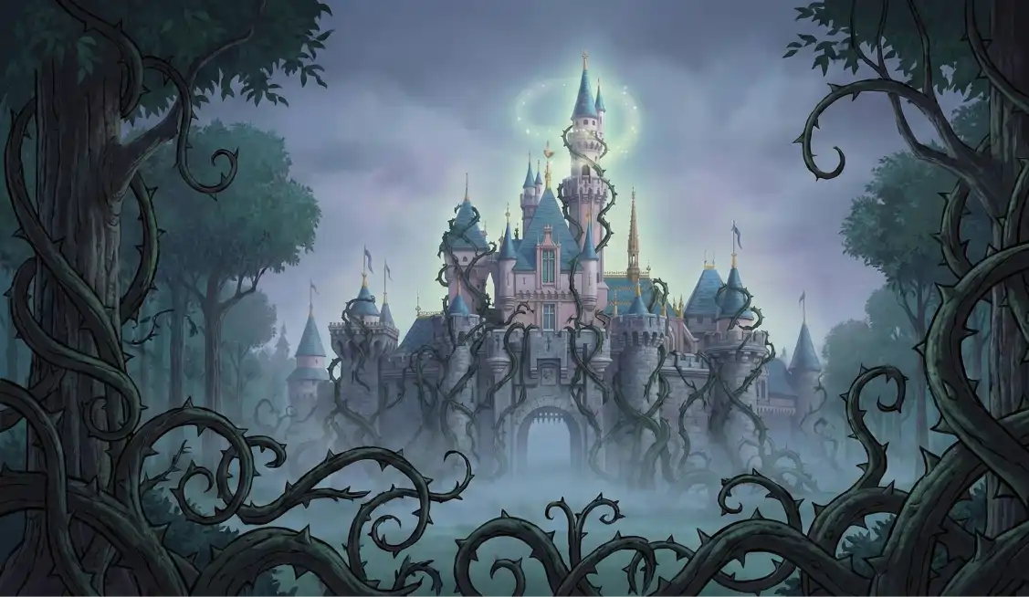 Covered in thorns during the curse, the castle waits patiently for the moment when love will break the spell and restore life to the kingdom.